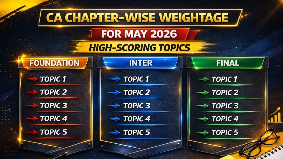 Whether you're studying for the Foundation, Intermediate, or Final ICAI CA exams, one of the best methods to organize your study schedule is to understand chapter-wise weighting. Knowing which chapters typically receive higher grades allows you to more effectively manage your time and effort, which will improve the focus and outcome of your preparation.