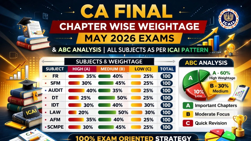 Because of the extensive CA Final curriculum, it's critical to understand the relative importance of each chapter in order to organize your time effectively while revising. Important issues should also be given enough time. The weighting below, which is based on previous ICAI exams, will assist in determining the significance of the topics, even if the weighting varies with each try. Leaving any case based on weightage is absolutely discouraged because, in the last few tries, a lot of unexpected queries resulted from unrated issues. Every topic should be revised; you can use the analysis below to help you allocate your revision time to different areas.