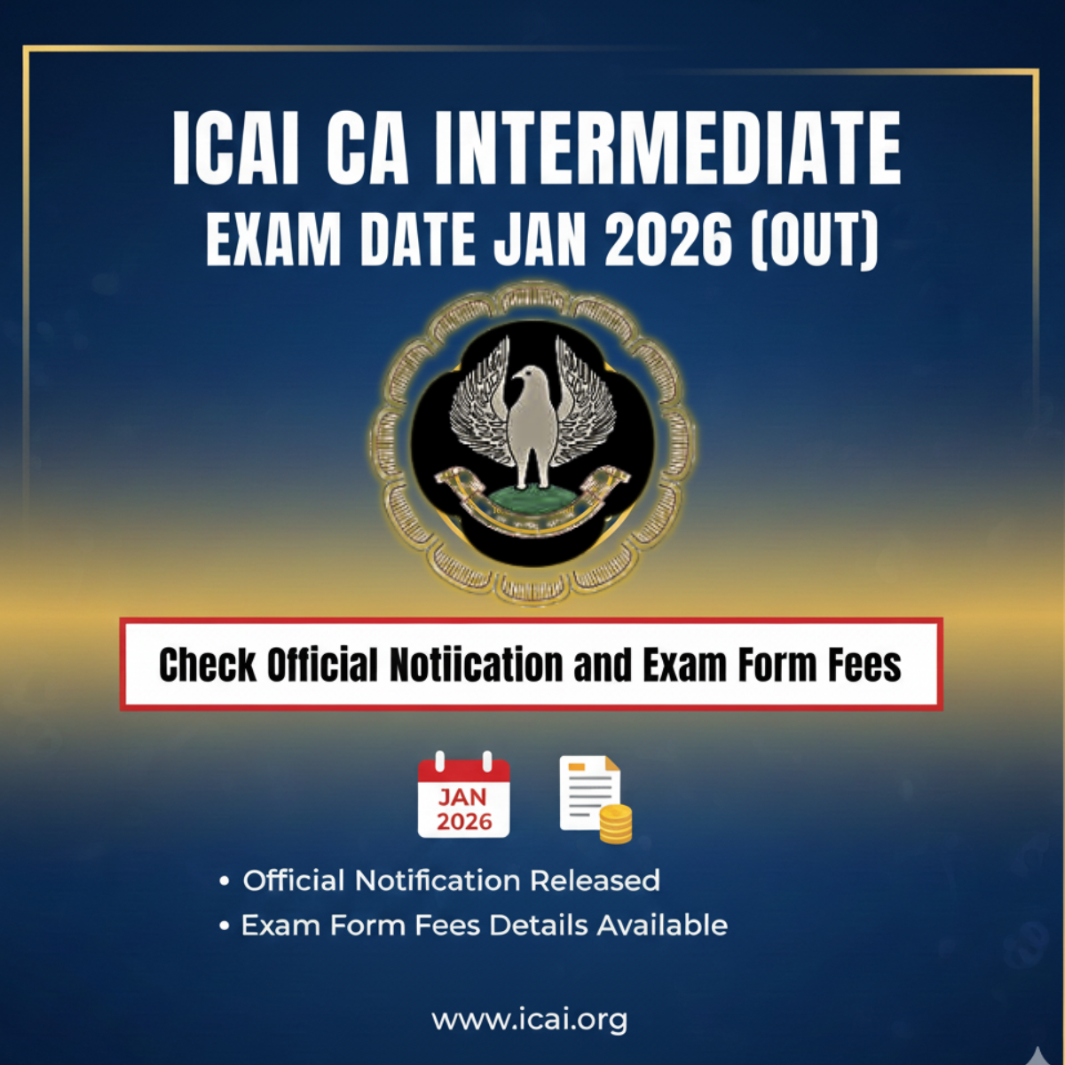 The CA Intermediate Exam Date for January 2026 has been announced by ICAI. The exam dates for January 2026 are January 6, 8, and 10 for Group 1 and January 12, 15, and 17 for Group 2.